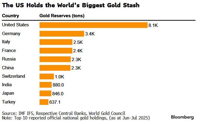 Unlike most countries, the US’s gold is held by the government directly, rather than the central bank.