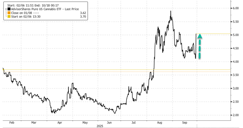 The largest marijuana ETF by market capitalization jumped in premarket trading after President Trump’s Truth Social account published an overnight informational video highlighting the health benefits of cannabidiol (CBD), an active ingredient in cannabis derived from the hemp plant, for seniors.