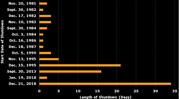 That dynamic helps explain why the 34-day shutdown of late 2018 – the longest since 1981 – had little measurable impact on growth in the fourth quarter of that year.