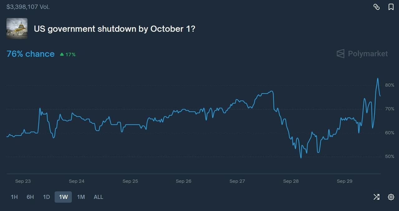 The likelihood of a shutdown as of midnight Oct. 1 is high.