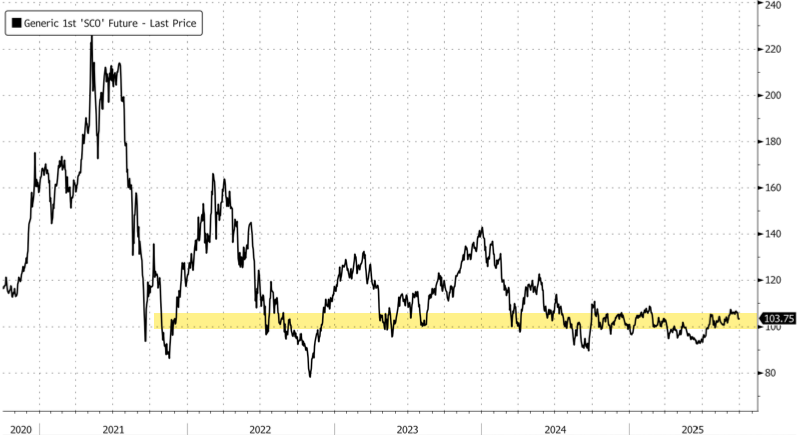 Singapore iron ore futures rose about 1% to $104 a ton. BHP shares in London fell 2%.