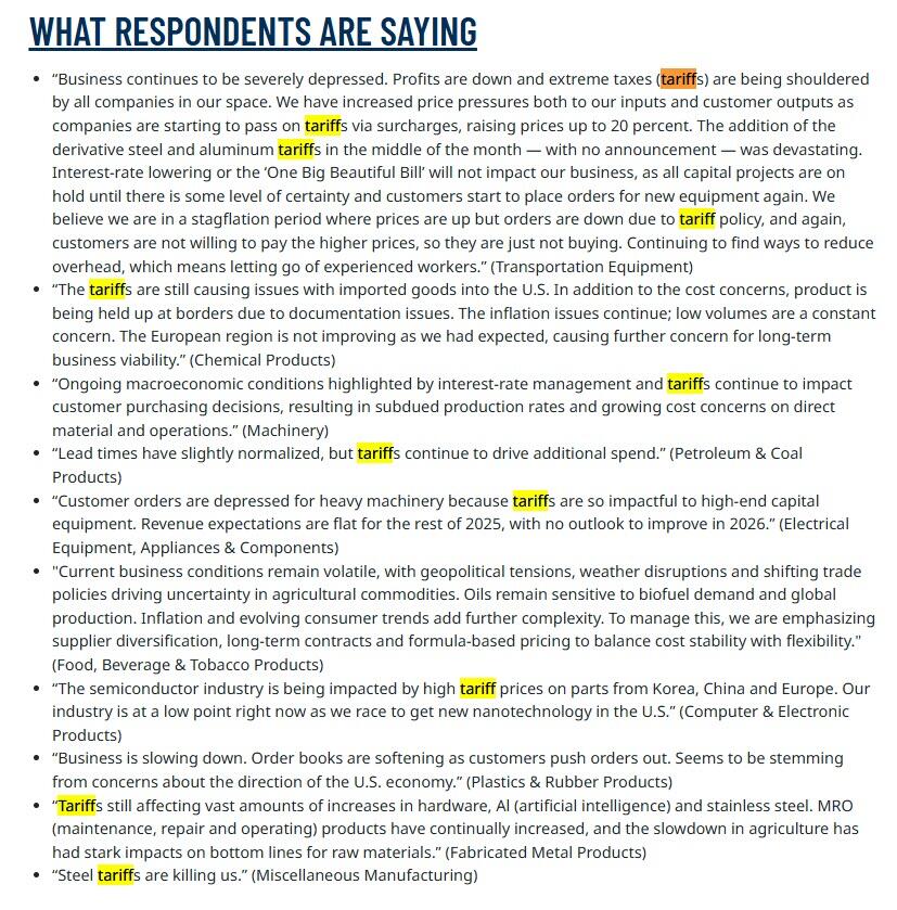Respondents were, as has been the case lately, largely despondent and still blaming tariffs for their woes (because that’s easier than adjusting any weakness in their business of course):
