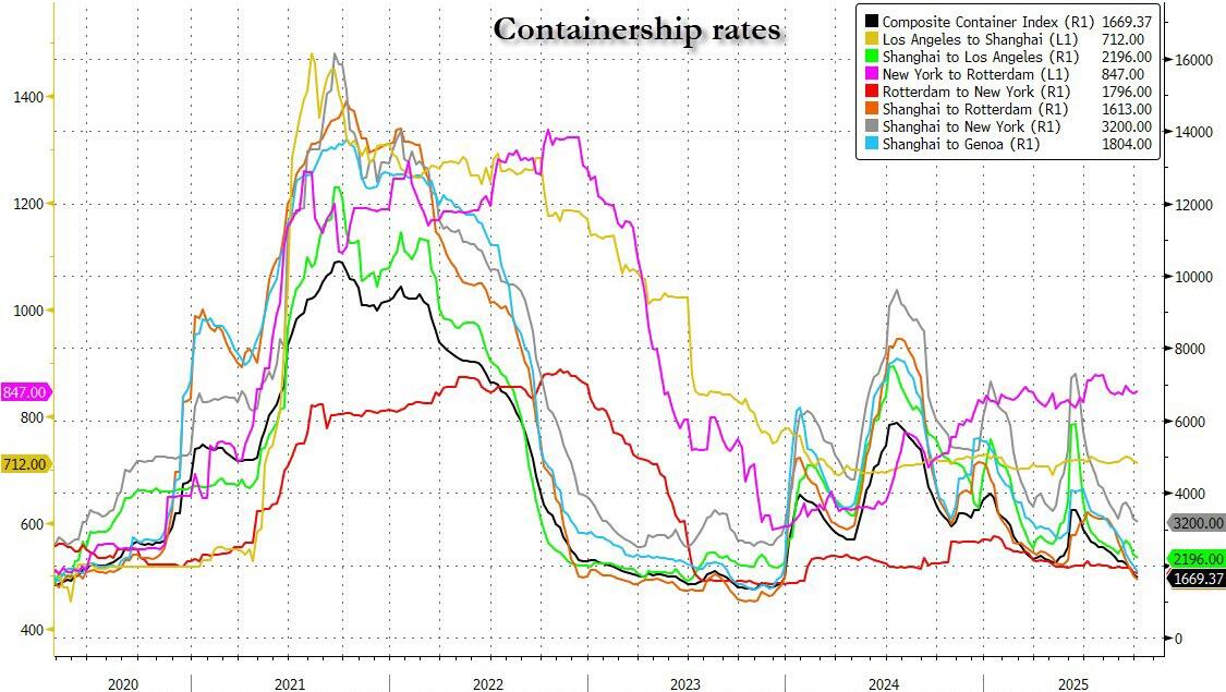 The last time West Coast prices were this low was around December 2023, when spot rates dipped to approximately $1,744 per FEU.