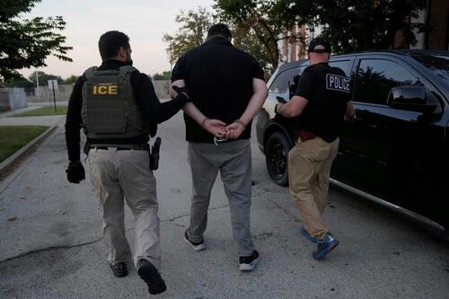 U.S. Immigration and Customs Enforcement agents make an arrest during an early morning operation in Park Ridge, Ill., on Sept. 19, 2025. Erin Hooley/AP Photo