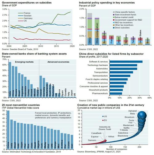 In his latest report, JPM’s Michael Cembalest, hardly a fan of the Trump admin, discussed how the recent purchases of stakes in companies like Intel is actually a good idea, to wt: