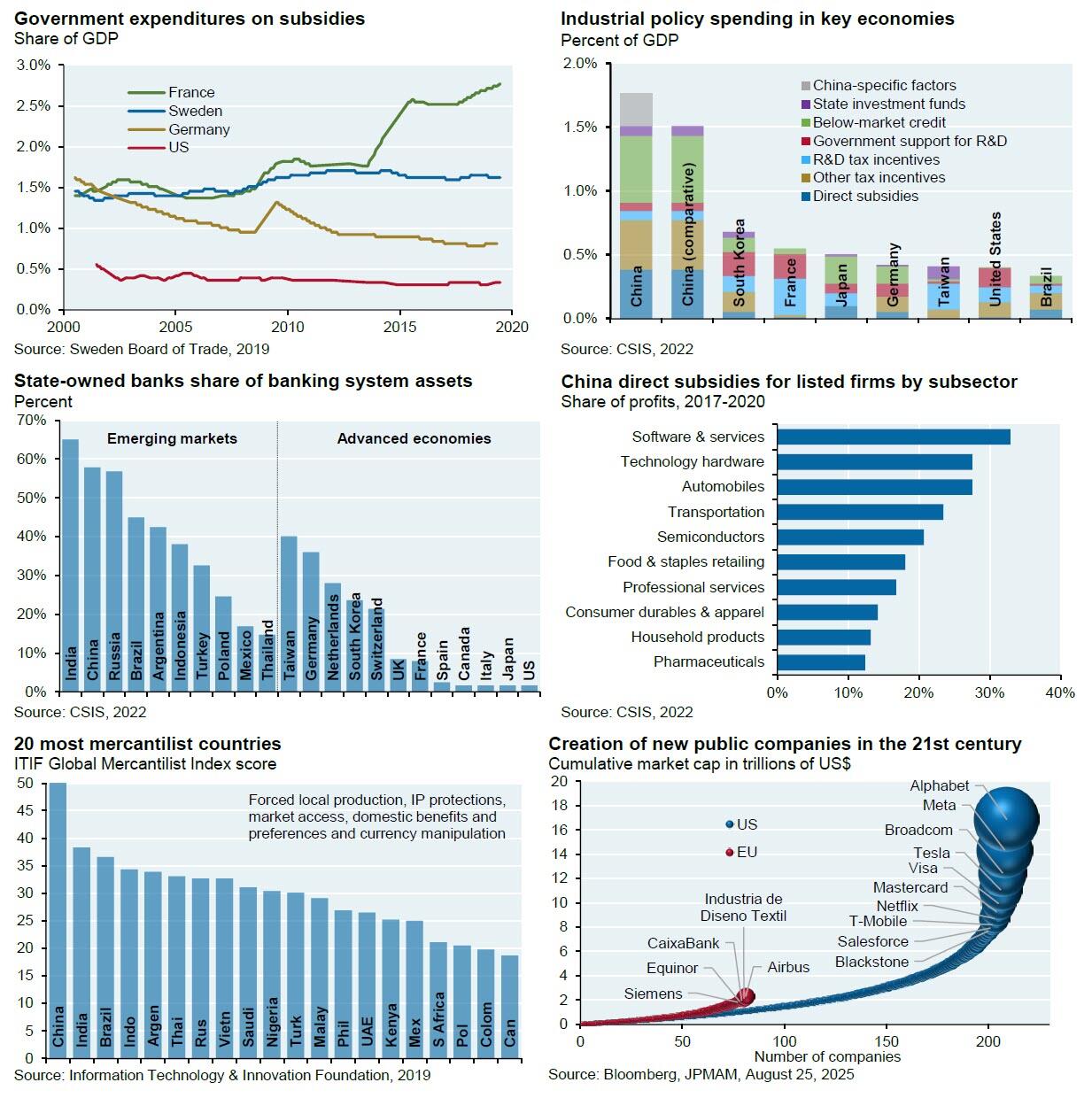 Bottom line: it’s a really mercantile world out there. While the US has a stellar track record in creating new companies compared to Europe (see bubble chart), the rest of the world often provides a lot more in the way of tax, loan, grant and other subsidies to its manufacturing industries than the US4F5. In China, the world’s most mercantile country, such subsidies can reach 15%-35% of industry profits. Providing a Federal government lifeline to Intel may have been the least bad option in the world illustrated below