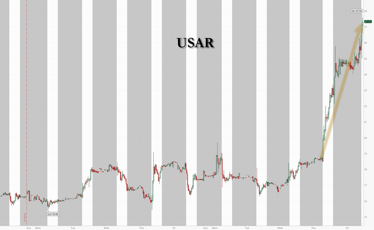 USA Rare Earth shares rose more than 18% to a record high Friday after CEO Barbara Humpton said the company was in “close discussions with the White House” during a CNBC interview. We have highlighted the name multiple times when discussing potential rare earth companies that the Trump administration could take interest in. We also noted MP Materials months ago before the company’s nearly 400% ascent.