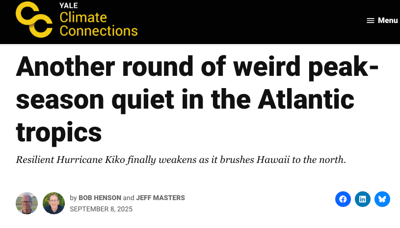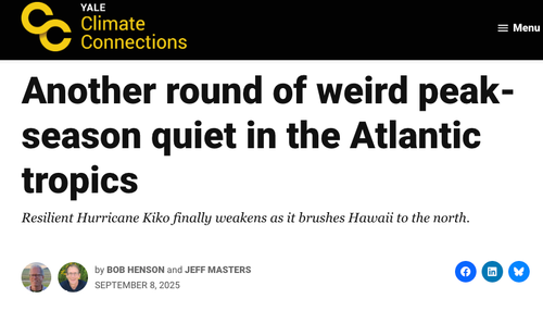 A year late, Yale Climate Connections journalists are glitching because they can’t explain “Another round of weird peak-season quiet in the Atlantic tropics.”