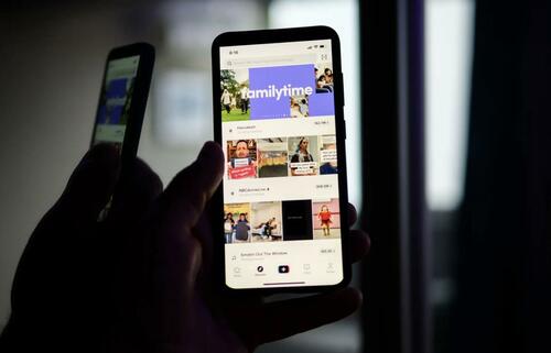 Women with their cell phones in New York City on June 10, 2024. Experts say social media serves as a forum for groups promoting violence, despite platform restrictions. Samira Bouaou/The Epoch Times