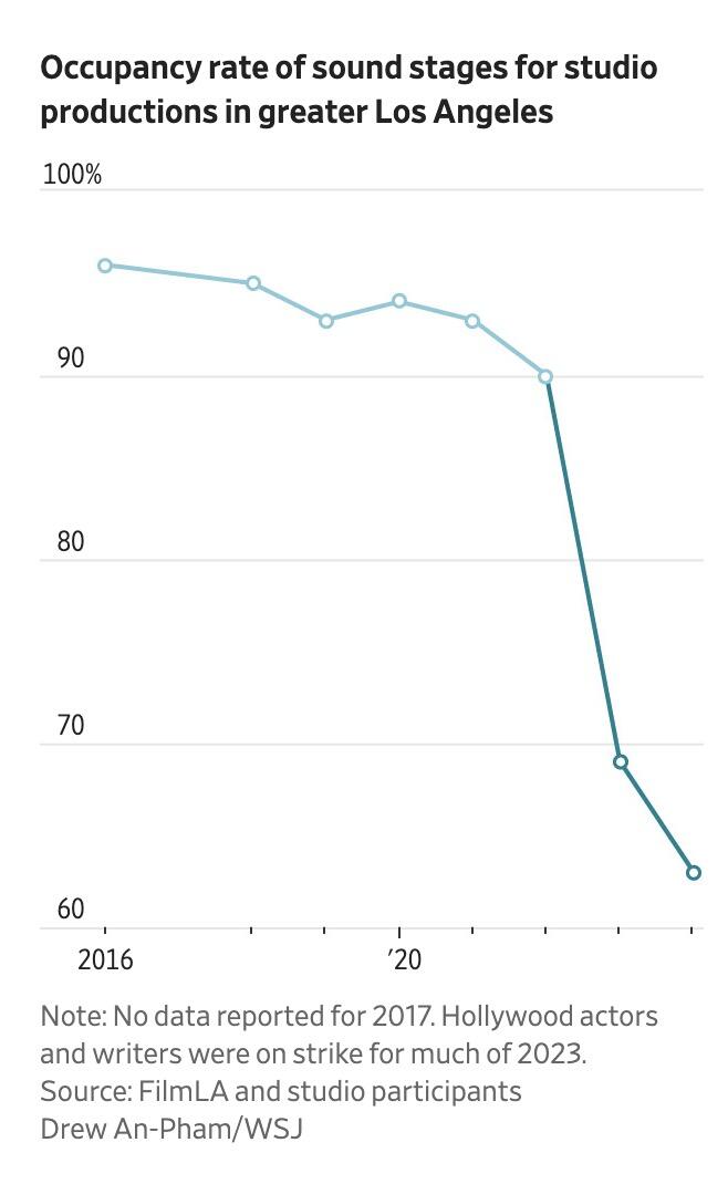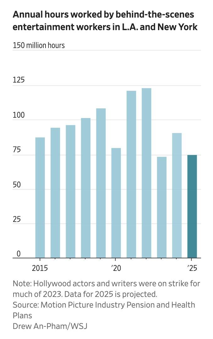 The Journal writes that the collapse has rippled far beyond film sets. Local businesses that once relied on entertainment workers are shuttering. Cookie shop owner Courtney Cowan, whose Milk Jar Cookies once thrived on studio orders, shut down in early 2024 and declared bankruptcy. “It’s not dramatic to say that the result has been personal financial ruin,” she said.