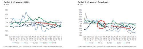This brings us to a report published by a team of Goldman analysts led by Eric Sheridan, who provided clients with everything they need to know about dating app companies tracked by GS ahead of the third quarter earnings season.