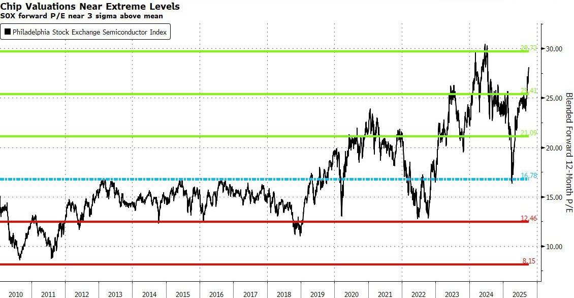 The market’s latest winning streak has been fueled by AI euphoria and optimism about earnings, but those drivers could reach a limit. “Profit-taking risks have rapidly risen across markets, and are particularly elevated for Nasdaq, potentially hampering further upside,” according to Citi’s Chris Montagu. Meanwhile, AI valuations are nearing extremes, with the SOX Index’s forward P/E ratio approaching three standard deviations above the 15-year average. Still, tech news keeps coming, and it seems like anything OpenAI touches turns to gold.