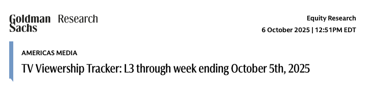 For the full report on Goldman’s traditional TV viewership tracker, ZeroHedge Pro Subs can read the full report in the usual place.