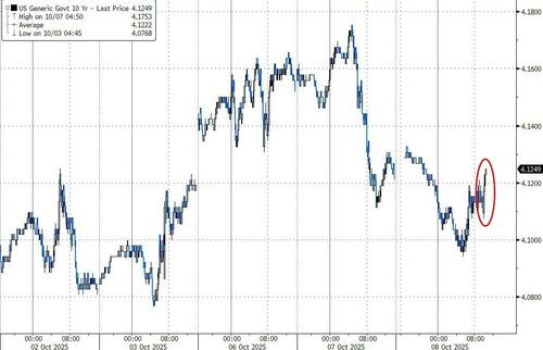 Overall, this was a subpar and disappointing 10Y auction, but it could have been worse, which is why while yields moved by 1-2bps higher across the curve, pushing the 10Y to 4.125%, they are well off yesterday’s session highs.