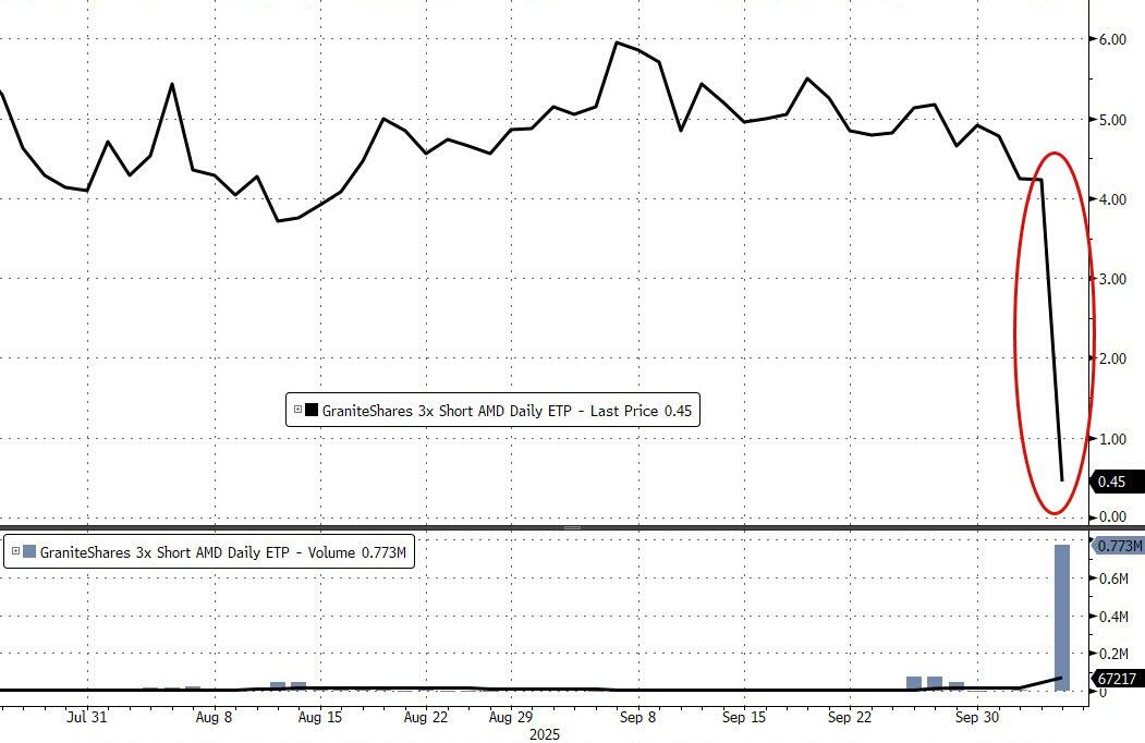 “We got our first termination event. The GraniteShares -3x AMD ETP in Europe is no longer. Forced termination, XIV-style…”