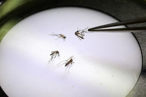 A laboratory technician holds a mosquito at the World Mosquito Program factory in Medellín, Colombia, on June 4, 2024. Scientists have long released biologically modified mosquitoes to curb transmission of diseases such as chikungunya. Jaime Saldarriaga/AFP via Getty Images