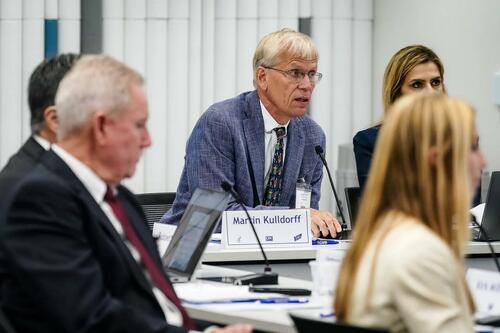 Martin Kulldorff speaks during a meeting of the CDC’s Advisory Committee on Immunization Practices in Chamblee, Ga., on Sept. 18, 2025. The federal vaccine advisory group, appointed by Health Secretary Robert F. Kennedy Jr., is to make recommendations on who should receive COVID vaccination and whether all babies should get vaccinated against hepatitis B at birth. Elijah Nouvelage/Getty Images