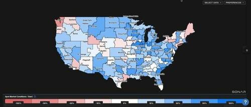 The spot market heat map in SONAR, which tracks sudden shifts in spot market rates, has turned extremely blue, indicating that spot rates are suddenly surging well beyond recent trends.