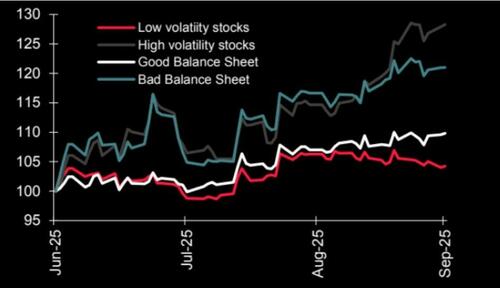 Lastly, retail trading volume had climbed significantly, focusing on leveraged ETFs and meme stocks. Many trades are based on social media narratives, not balance sheet strength or revenue forecasts. This shift in behavior to chasing poor fundamentals and high volatility stocks has historically marked peaks, not bottoms.