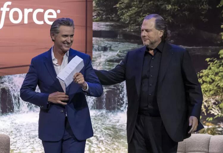That’s a particularly interesting stance, given Benioff is close friends with California Gov. Gavin Newsom — so close, in fact, that Benioff is a godfather to one of the Newsom’s children. As Benioff endorses Trump deployment of National Guard troops to San Francisco, Newsom is suing the Trump administration over the deployment of Guard soldiers to Los Angeles. Benioff’s left-leaning resume also includes his hosting of a major 2016 fundraiser for Hillary Clinton at his $31 million mansion alongside the Presidio, and his personal bankrolling of a city ballot measure to raise taxes on businesses to fund welfare for the homeless.