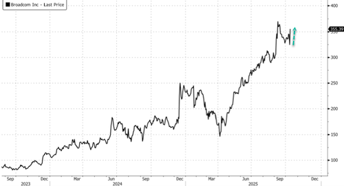 Shares of Broadcom surged early in the U.S. cash session after the chip designer signed a multiyear agreement with Sam Altman’s OpenAI to co-develop 10 gigawatts of custom AI accelerators and systems, marking a strategic move toward vertically integrated AI infrastructure such as data centers. This follows recent deals between the ChatGPT creator and both Nvidia and Advanced Micro Devices, and comes less than two weeks after we described the stunning math behind AI vendor financing, calling it an epic “circle jerk.“