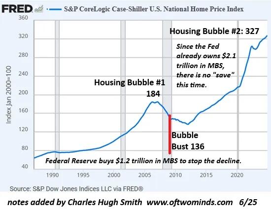 The official policies of replacing increases in the purchasing power of wages with the artifices of expanding debt and credit-asset bubbles have reached their limits, and rather than solutions they are now the problem–a problem whose only resolution is the destruction of the phantom wealth via bankruptcy, default and writedowns of debt that will never be paid back.