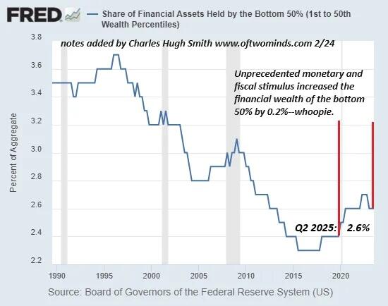 But this reliance on asset bubbles to generate wealth and consumption has exacerbated wealth and income inequality, as the system is designed to benefit those who already own assets and who have access to low-cost credit, i.e. the already-wealthy.