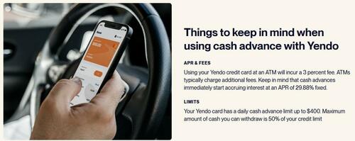 The startup, Yendo Inc., makes it even easier to squeeze blood from that stone. After signing up, the company issues the borrower a credit card – which incurs an additional 3% fee if used at an ATM to pull cash out.