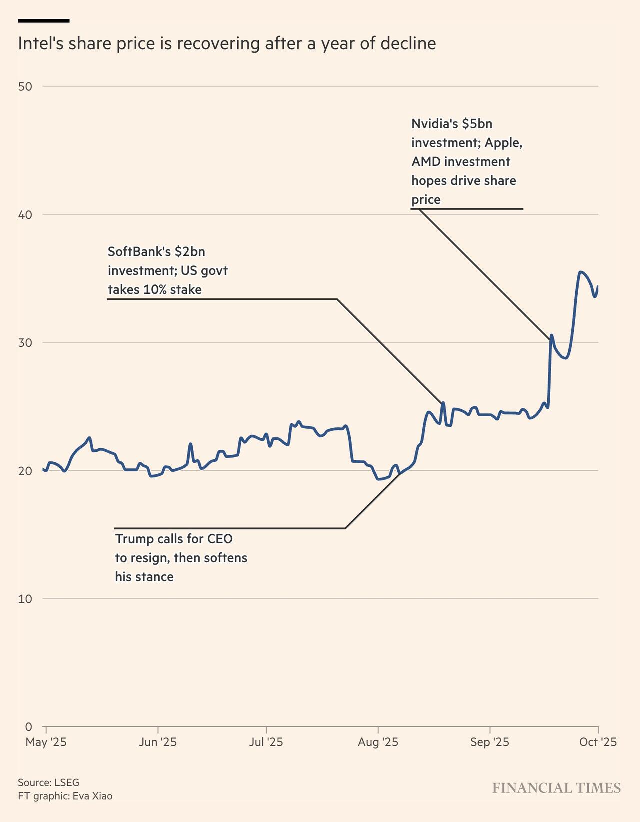 The US government has intervened, converting planned subsidies into equity and taking a 10% stake in Intel. That move, followed by investments from Nvidia and SoftBank, lifted Intel’s shares more than 50% in a month. “Intel went from too big to save, to too big to fail,” said Dan Hutcheson of TechInsights. Trump’s pressure on Big Tech to support domestic manufacturing could also push customers toward Intel.