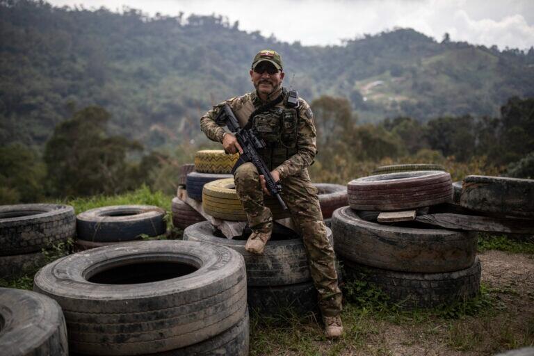 Hector Bernal, a military instructor, poses for a photo in La Mesa, Colombia, Wednesday, Jan. 10, 2024. Bernal, a retired combat medic who runs a center for tactical medicine outside Bogotá, says that in the last eight months he’s trained more than 20 Colombians who later went on to fight in Ukraine. He says that a professional soldier who has six years in the army doesn’t make more than $600 a month in Colombia, but in Ukrain,e the soldiers are being paid $3,000 to $4000 a month. (AP Photo/Ivan Valencia)
