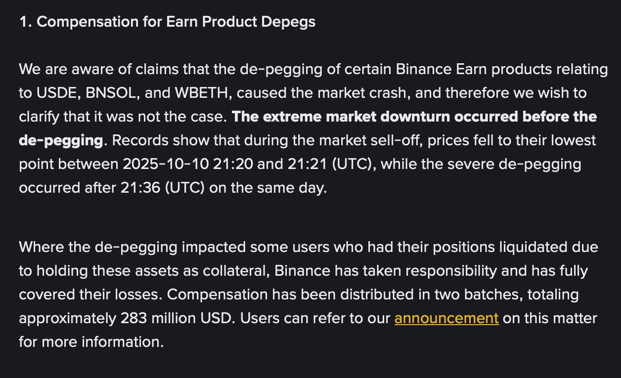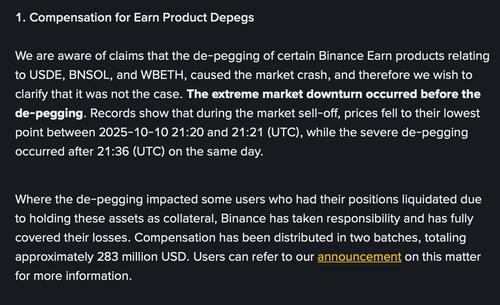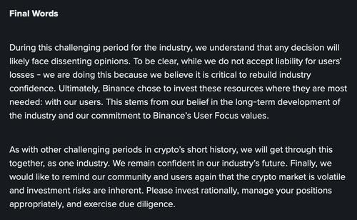 Binance clarified that the exchange does not “accept liability for users’ losses,” saying the move is designed to “rebuild industry confidence.”