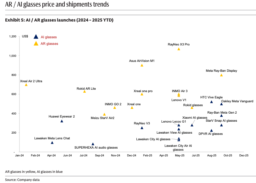 A wave of new AI and AR glasses has flooded the consumer market in the second half of this year. Goldman Sachs analysts, led by Allen Chang, provided clients with a breakdown of what the next phase of the smart-glasses boom will look like.