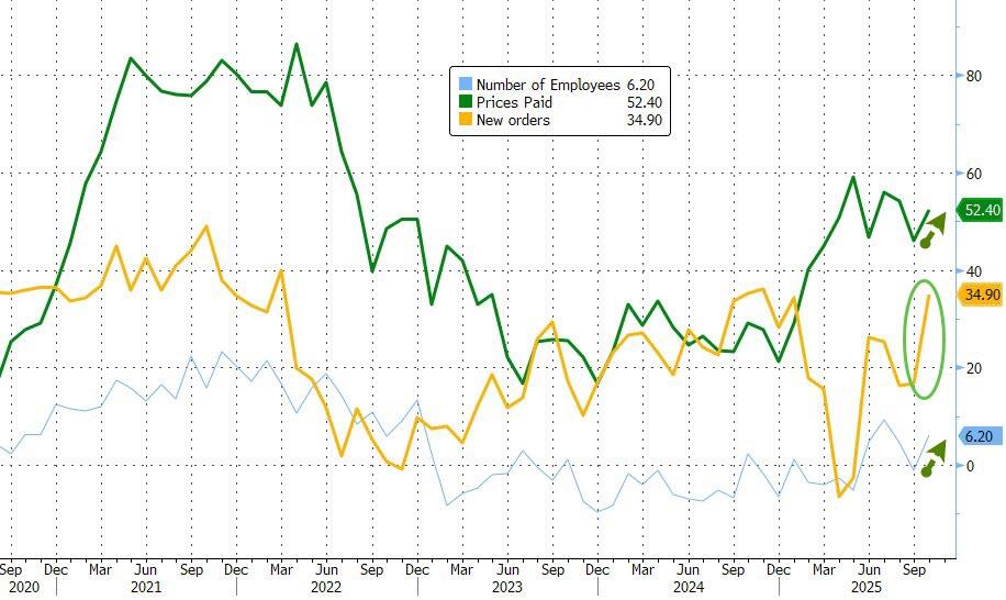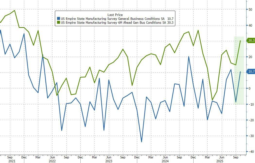 Amid the desert of macro data due to the shutdown, traders are reaching for anything to get a sense of the US economy and this morning’s Empire State Fed Manufacturing Survey offers hope for the future.