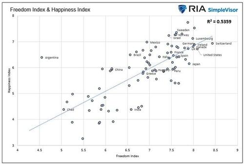 As the graph below illustrates, a strong correlation exists between economic freedom and happiness. Not only does economic freedom make a country more productive and wealthier, but it can also boost the happiness of its citizens. Statistically speaking, capitalism seems to be a win-win situation.