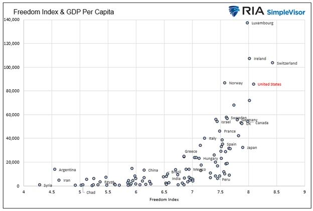 No country operates entirely under pure capitalism. Nor do they employ a strictly socialist or communist system. For instance, communist nations like China and Russia are gradually allowing capitalism to enter their economies. Therefore, while we have ideas about where countries might fall on the economic and political spectrums, this data helps us better quantify the accuracy of said ideas. From an investing perspective, the trends in a nation’s index help us appreciate its future growth potential.