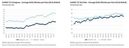 A team of Goldman analysts led by Eric Sheridan published an earnings preview note that covered the digital advertising sub-sector. What caught our attention wasn’t the changes in stock recommendations, but a section further down that cited SensorTower data on growth and engagement trends across major social media platforms.
