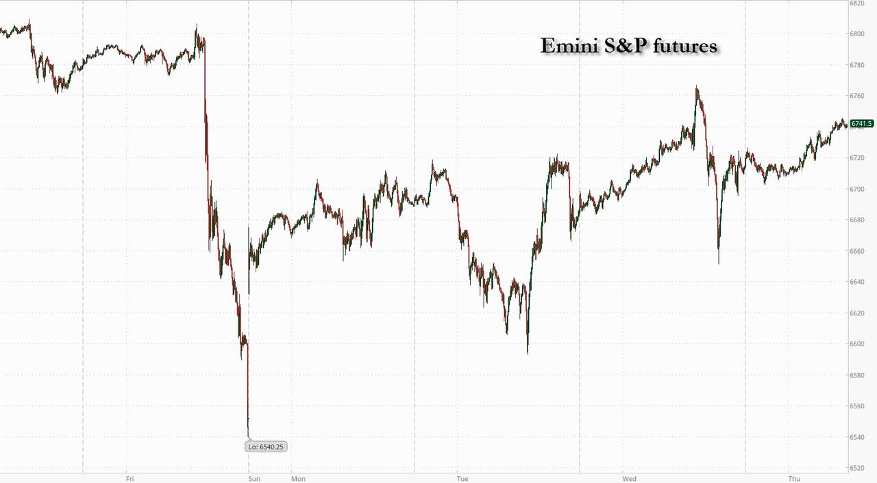 Futures resumed their meltup after Taiwan Semiconductor Manufacturing Co. hiked its revenue-growth target and raised its forecast for capital spending. TSMC’s results reinforced hopes on the AI megatrend, after the chipmaker increased its revenue outlook for the second time this year, and underscored how leading chipmakers stand to be among the biggest winners from an AI investment boom that’s expected to top $1 trillion in the coming years. The market’s response showed investors remain optimistic about the corporate outlook, even as renewed trade tensions cast a shadow.