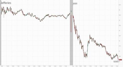 Meanwhile, the investment bank at the center of the entire First Brands saga, Jefferies, continues to get crushed, and at last check was down over 8%.