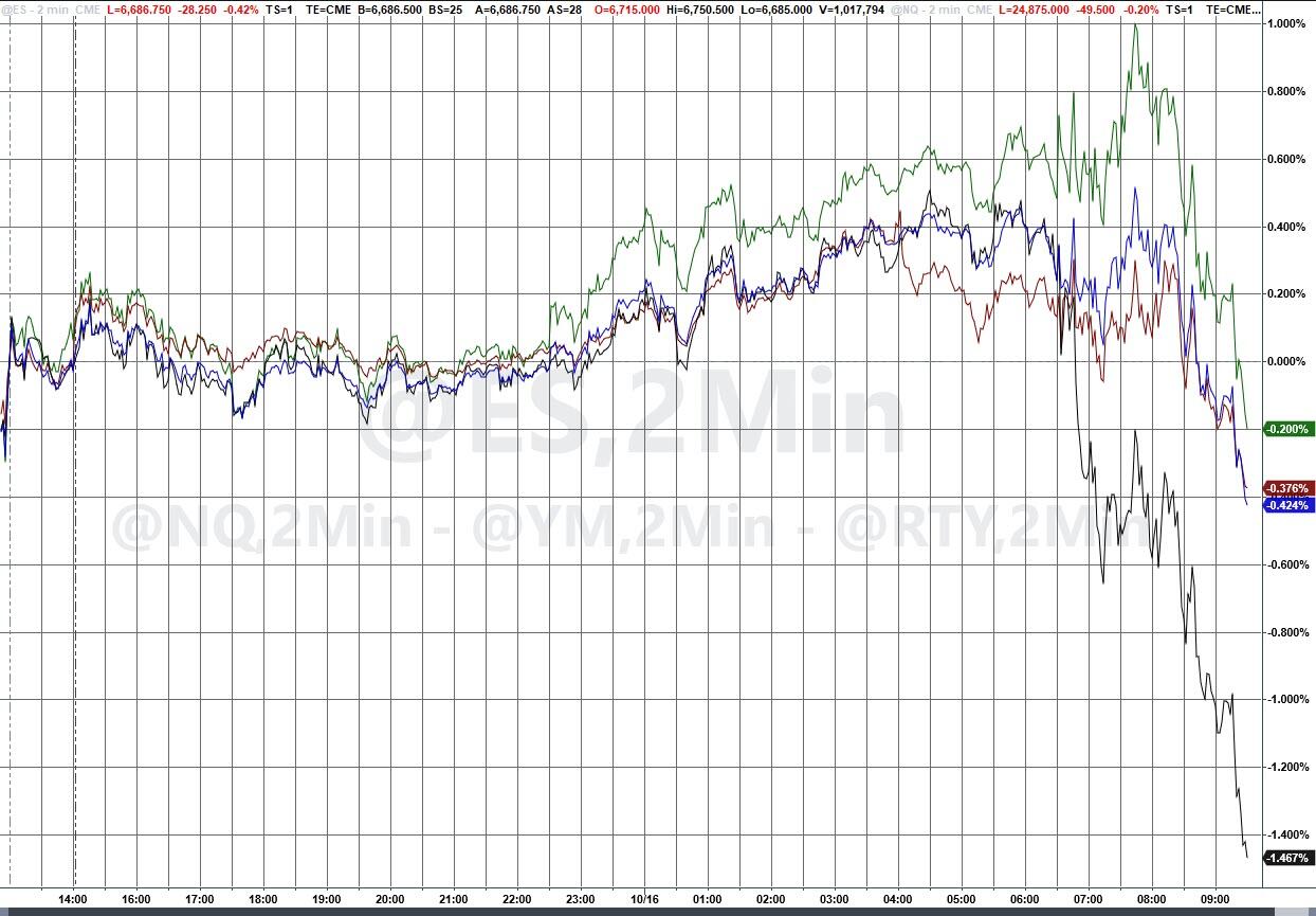 If we had to guess, we would say this is mostly related to the funding stress finally being recognized by a broader set of market participants as it seems demand for ‘good’ collateral is on the rise (gold and short-dated bonds) and leveraged risky assets are dumped.