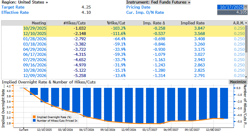 Meanwhile, rate traders have priced in two 25 bps cuts by year’s end.