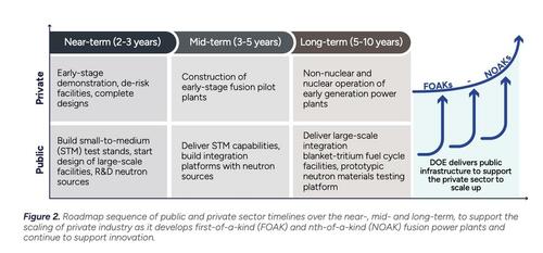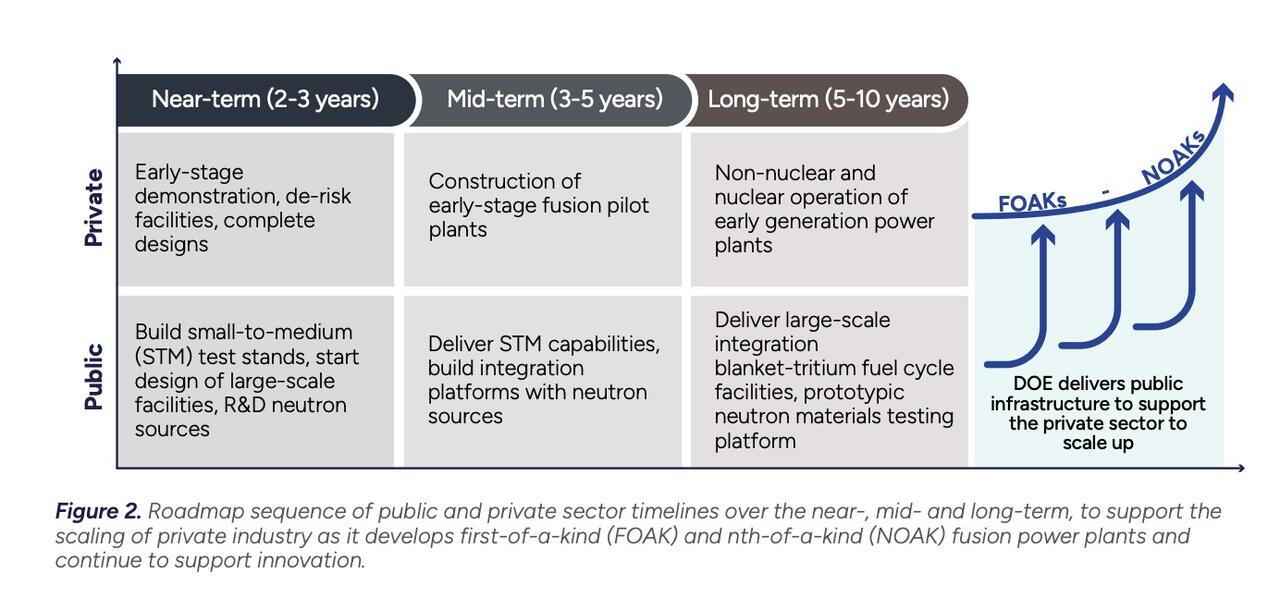 The roadmap sets near-, mid-, and long-term actions through the next decade, culminating in a domestic fusion industry capable of scaling up commercial operations in the 2030s. While it defines strategic priorities and milestones, specific funding commitments will depend on Congressional appropriations and future public-private partnerships.