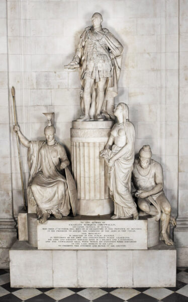 For example, here is a beautiful monument to General Charles Cornwallis. Americans think he disappeared after George Washington defeated him at the Battle of Yorktown, but he is honored here as Governor of Bengal.