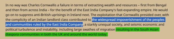 It’s because of Cornwallis’s wretched misrule that there are so many Indians in Britain and Canada and the United States.
