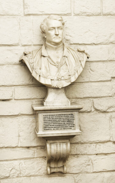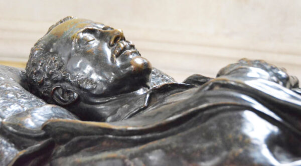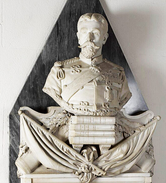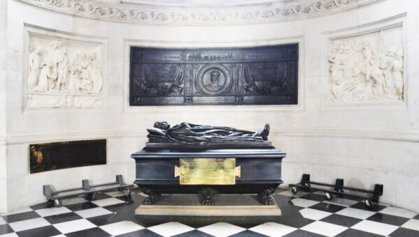 The brass plaque on the sarcophagus says, “He saved an empire by his warlike genius. He ruled vast provinces with justice, wisdom, and power.”
