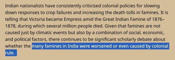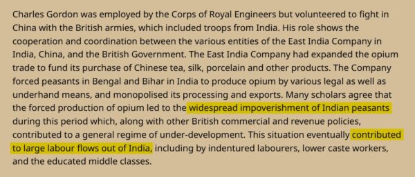 His policies in India led to “widespread impoverishment of Indian peasants” and “contributed to large labour flows out of India.”