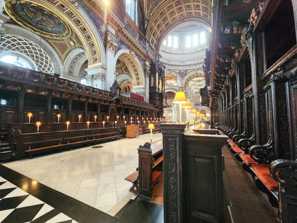 To step inside is to be even more awed than to see it in the distance. There is magnificence everywhere — this is the choir — and the dome, which towers 365 feet above the cathedral floor, is the tallest in Britain.