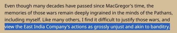 Mian Obaid Shah says he was a murderer and a terrible man, and that “the East India Company’s actions [were] grossly unjust and akin to banditry.”
