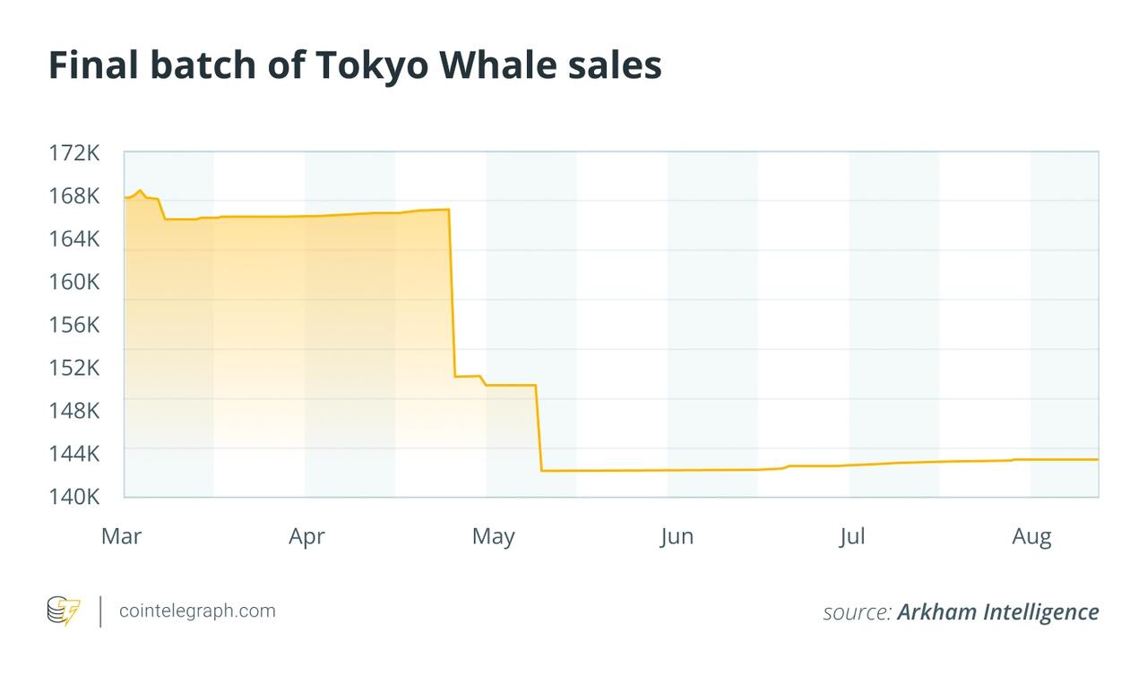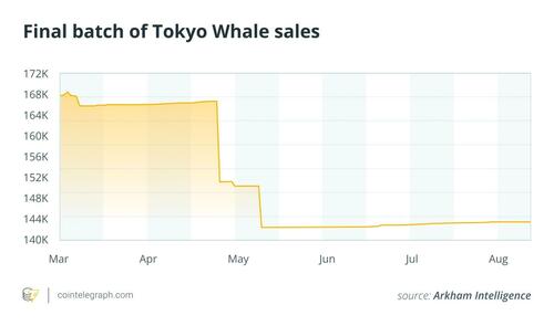 By Aug. 1, Arkham data showed Mt. Gox’s holdings had fallen by nearly 100,000 BTC, leaving around 46,000 BTC still under the trustee’s control.