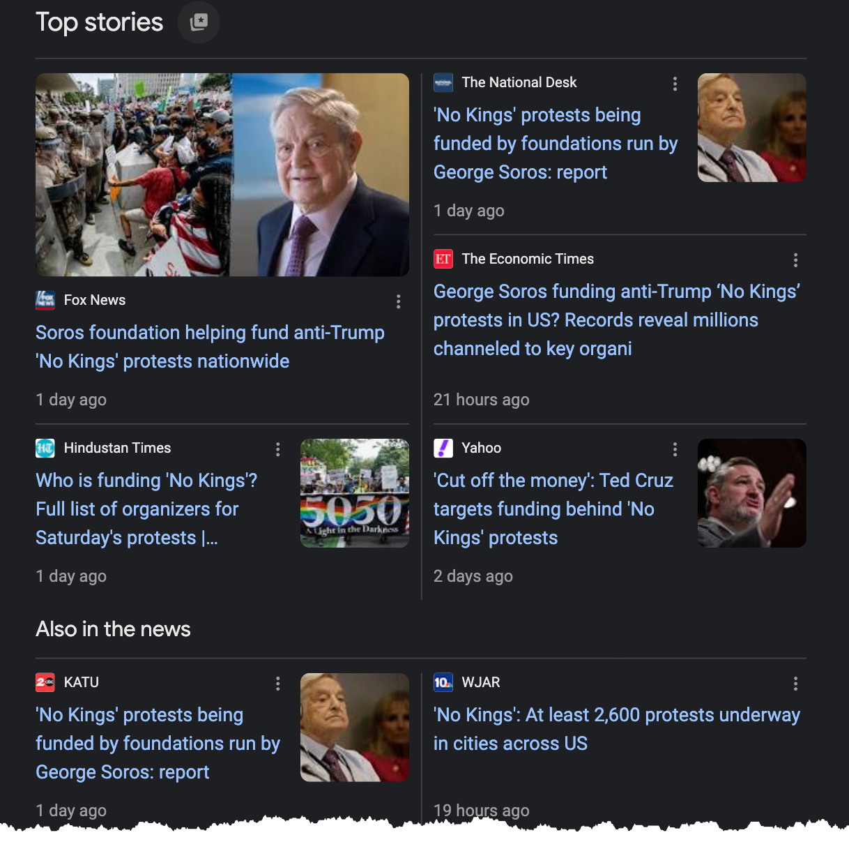 The problem for Democrats is that their protest operations for regime change are losing momentum. They just burned through tens of millions of dollars via their NGO network to support protests this weekend, yet learned nothing from earlier in the year, when the same protests flopped spectacularly. It’s downright embarrassing: the same crowd of white boomers once again lining city streets, proving the movement’s fatigue. Reporting from earlier this year: