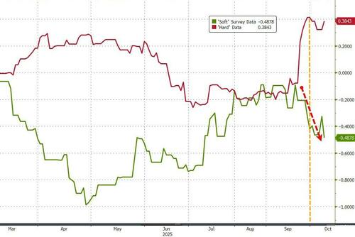 Finally, since the shutdown began, what little hard data we have seen is basically flat while soft survey data has deteriorated significantly…